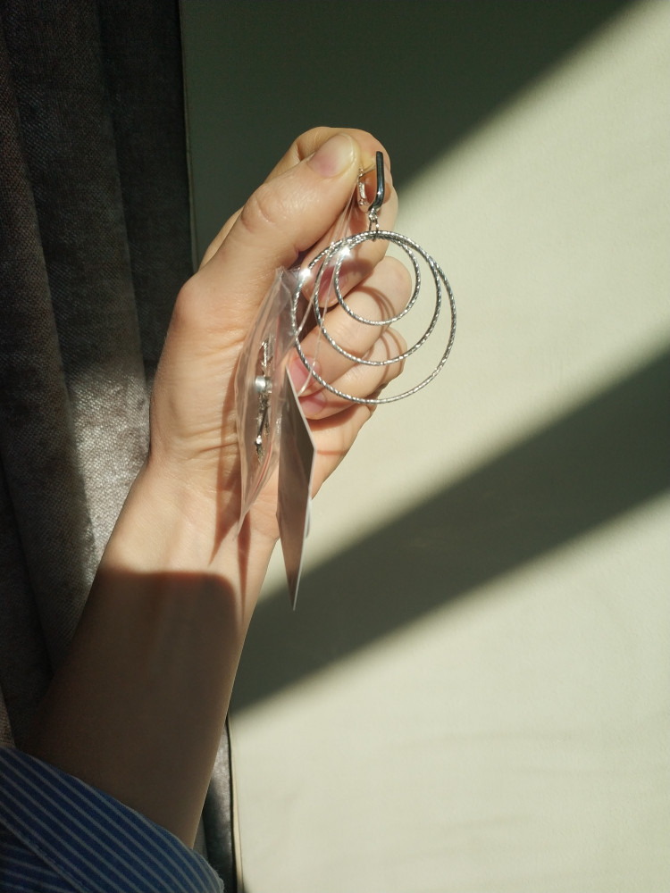 Очень красивое украшение. За счет того, что несколько колец, смотрится очень роскошно. Алмазное напыление сверкает при каждом повороте головы, что смотрится очень богато. Мои сережки очаровали всех!! Спасибо Флипу за такую возможность!!