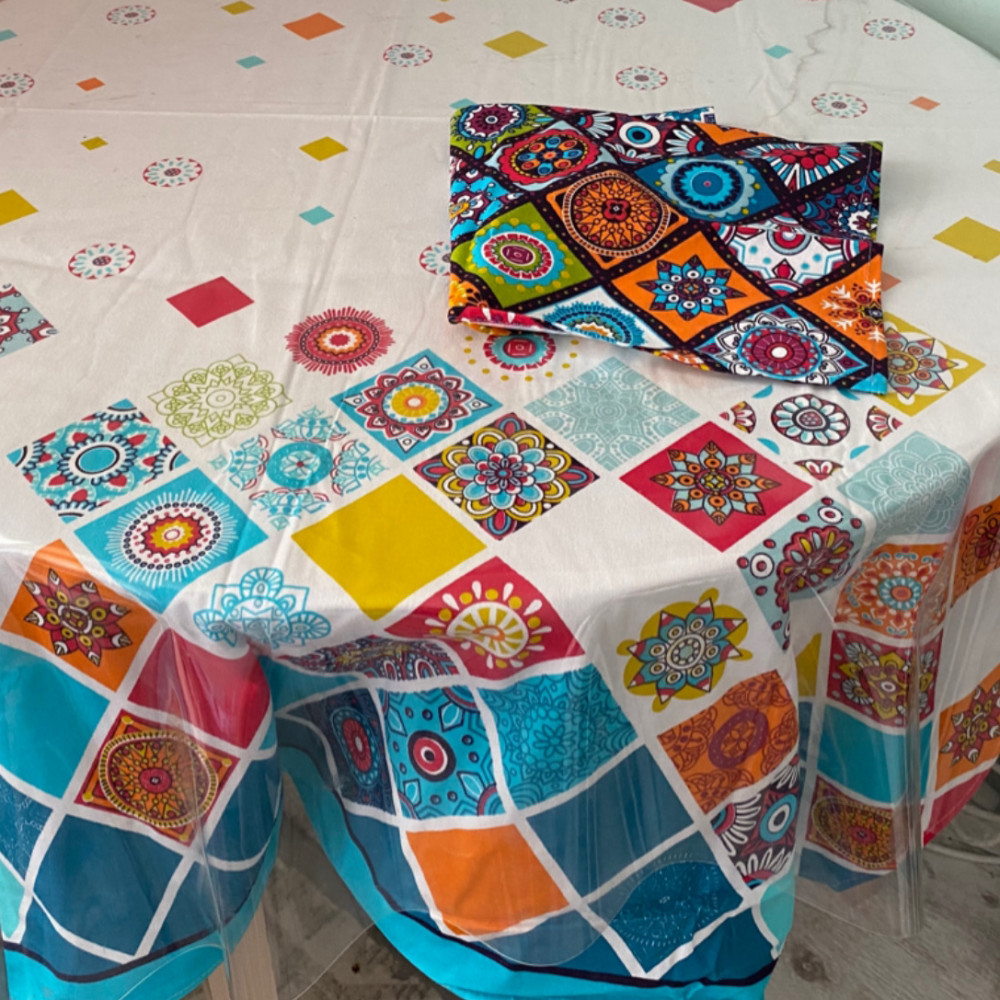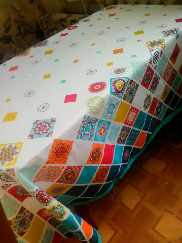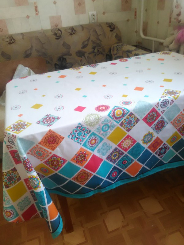Скатерть яркая, всё пришло упаковано как положено. Размер я угадала☺️, полотенце подобрала😍. Всем довольна. Благодарю 🙏