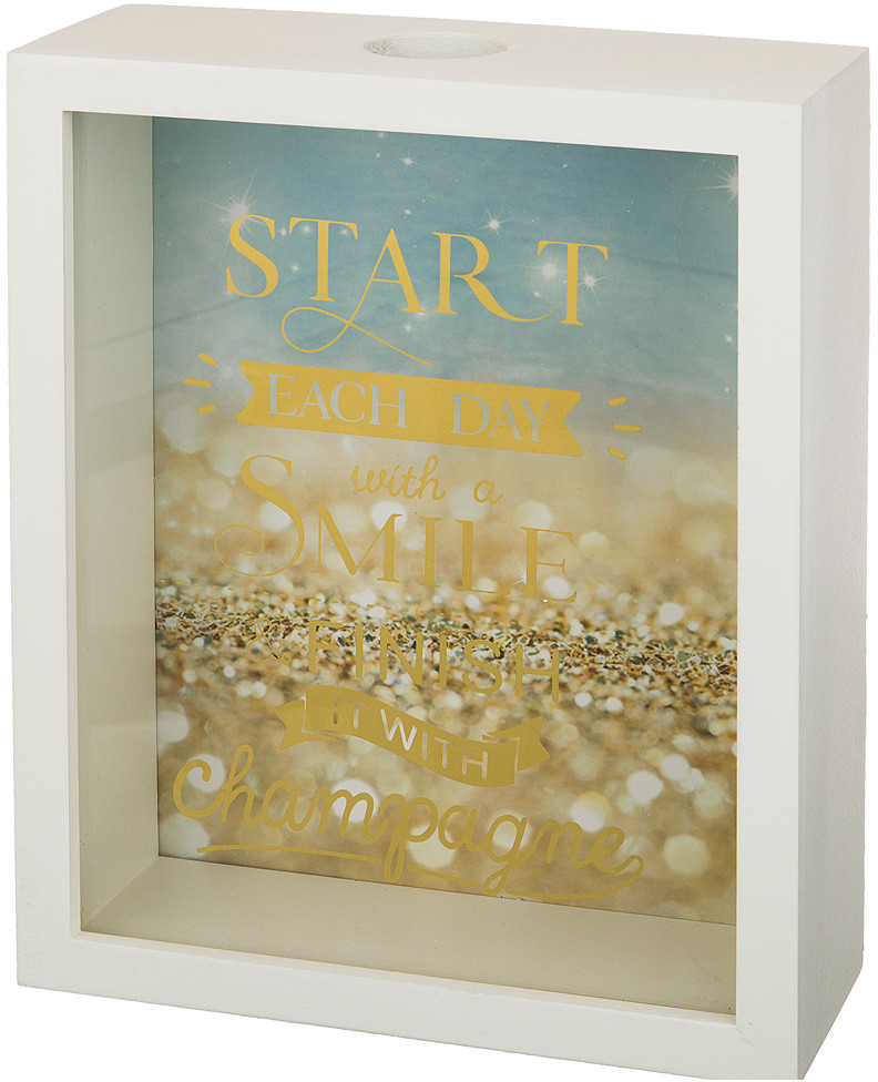 Спасибо за товар!!! Брала на подарок. Очень качественно сделана,красивая копилка,размер хороший. Название копилки "На приятные моменты" и на стекле надпись на английском,что в переводе " Начинай день с улыбки и заканчивай бокалом шампанского!" Я считаю отличный подарок с вложенными купюрами. Именинник был очень рад!!!