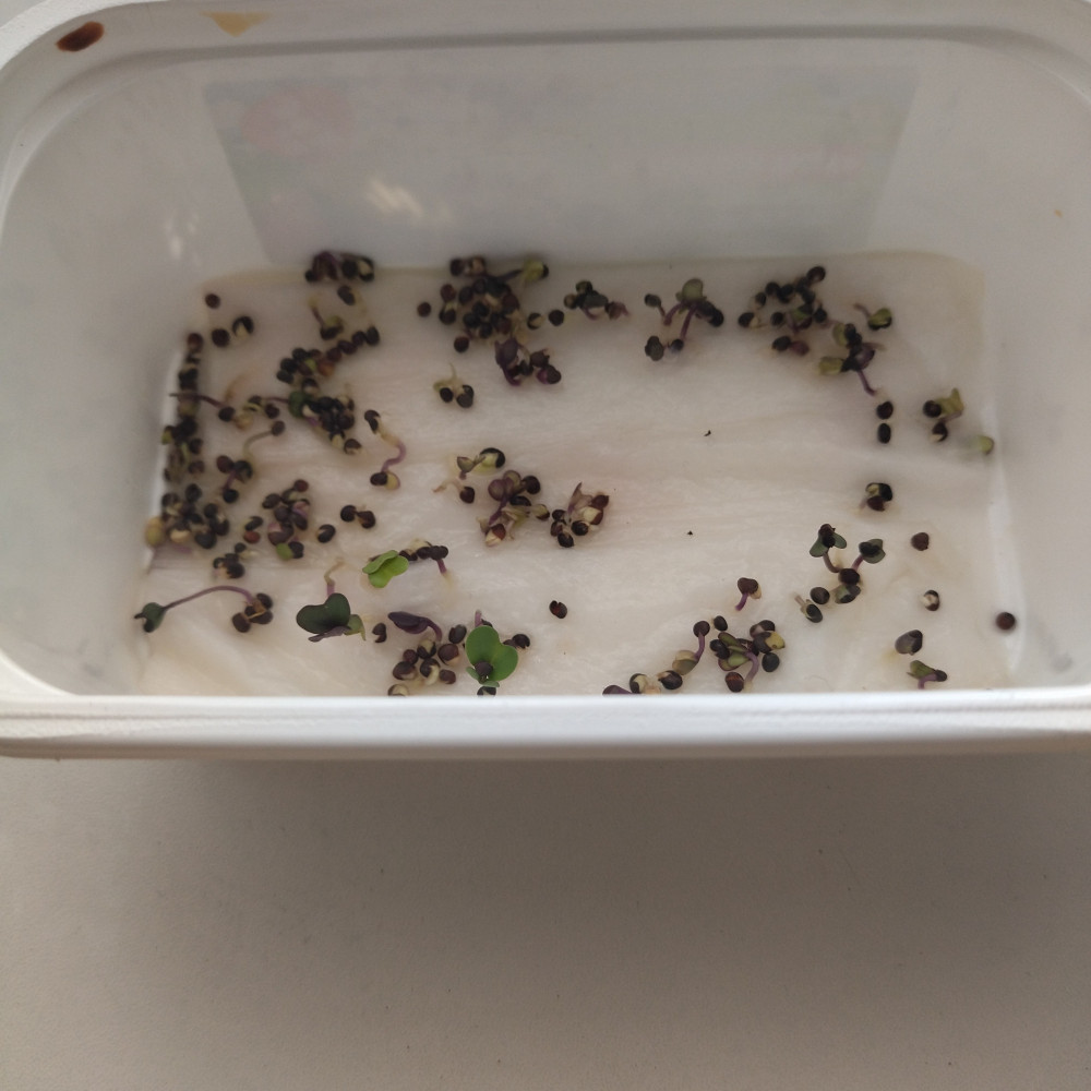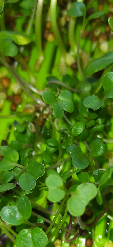 Всхожесть отличная! Семена очень мелкие, без салфетки в проращивателе проваливаются, я отдельно прорастила на салфетке и уже проросшие семена перенесла, корешки тонкие длиные. На вкус как свежая капуста). Растет по времени как руккола.