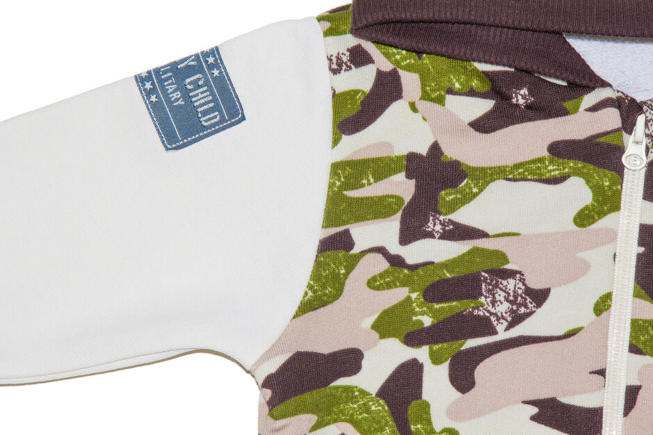 Курточка с капюшоном в милитари стиле оригинальная. Мягкая ткань и теплая кофта. Качественный материал. Капюшон спасает от непогоды. Комбинированность кофты хорошо сочетается с другими штанишками. При стирке не линяет. Соответствует размерной сетке.