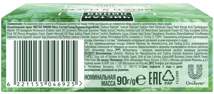Чистая линия Мыло косметическое универсальное «Свежая мята»