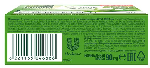 Чистая линия Мыло косметическое универсальное «Сочное алоэ»