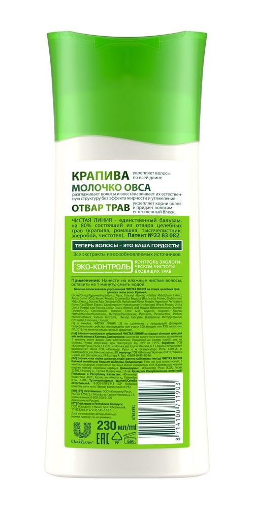 Чистая линия Бальзам-молочко для волос укрепляющий