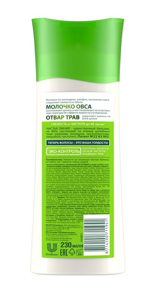 Чистая линия Бальзам-молочко для волос регулирующий «Календула»