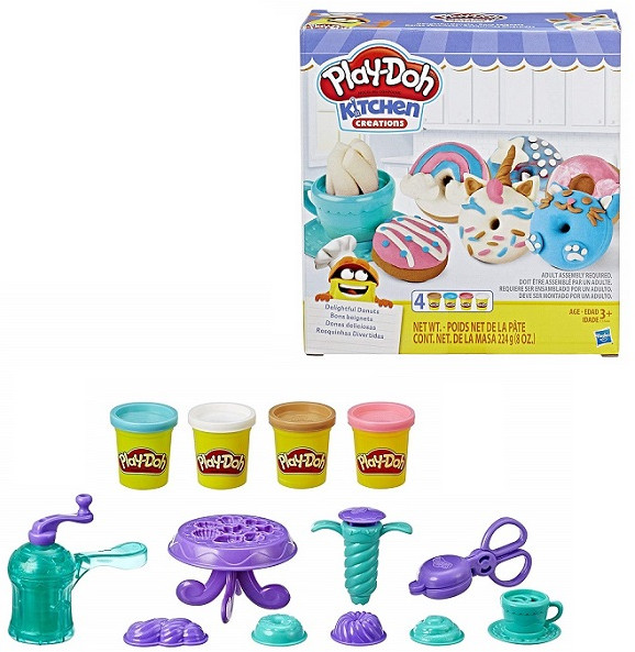 В наборе также есть 4 баночки оригинального пластилина. Среди инструментов присутствуют: кондитерский шприц, мельница, вафельница и прочее. Формочки позволят изготовить пончики разной формы и интересное печенье. Данный набор позволит не только потренироваться в лепке из пластилина, но и весело провести время, представляя себя поваром или владельцем собственной кондитерской.