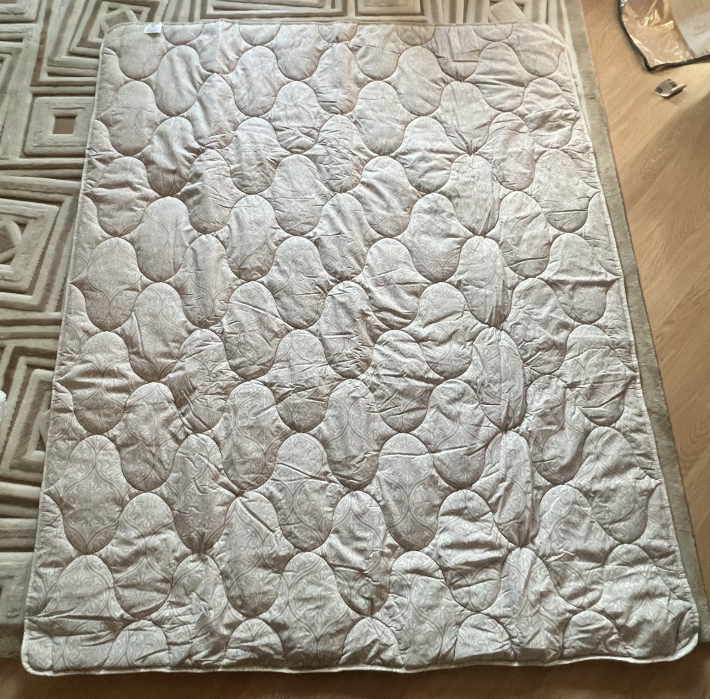 заказывала такое одеяло 3 года назад. качество было супер. решила ещё раз купить такое. и не много расстроена. качество не много хуже. и размер меньше по 2см с каждой длины. и цвет тоже другой, более коричневый. эх.... а так хотелось именно то...но увы