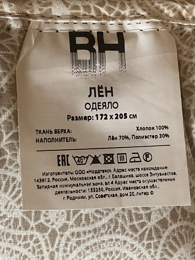 могу сказать одно одеяло не плохое, но того характерного запаха льна уже нет ,брала 2 года назад этой же фирмы одеяло несколько недель держался такой приятный травяной запах. Что касается пошива и ткани все отлично