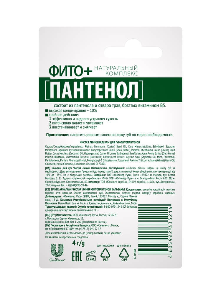 Чистая линия Бальзам для губ «Фитопантенол»