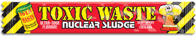 Жевательная конфета Toxic Waste «Nuclear Sludge Bar» стала прорывом на рынке кондитерских изделий. Дело в том, что не всегда любители сладостей положительно относятся к кислым сочетаниям, но этот продукт поразил многих и заслужил их любовь. Сейчас потребители готовы стоять длинные очереди, чтобы жевательная конфета Toxic Waste оказалась в их руках. Необычный вкус обеспечивается особой рецептурой, тщательно подобранной лучшими мастерами кондитерского дела в Соединенных Штатах. А новейшие технологии контроля качества не допускают погрешности в продукции этой компании.