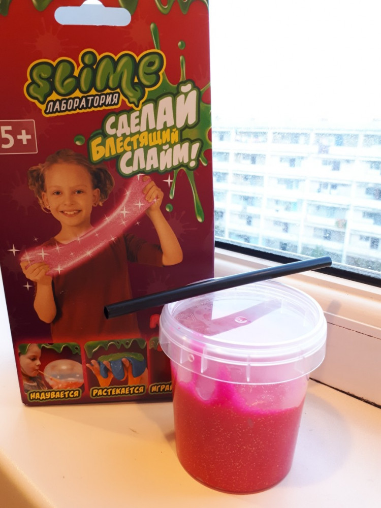 Классный набор для изготовления слайма. Заказывала для дочки 8 лет. Довольная, ждала. Всё сделала по инструкции, получился такой красивый розовый с блестяшками, а ещё и ароматный. Фото не передаёт цвет.💖