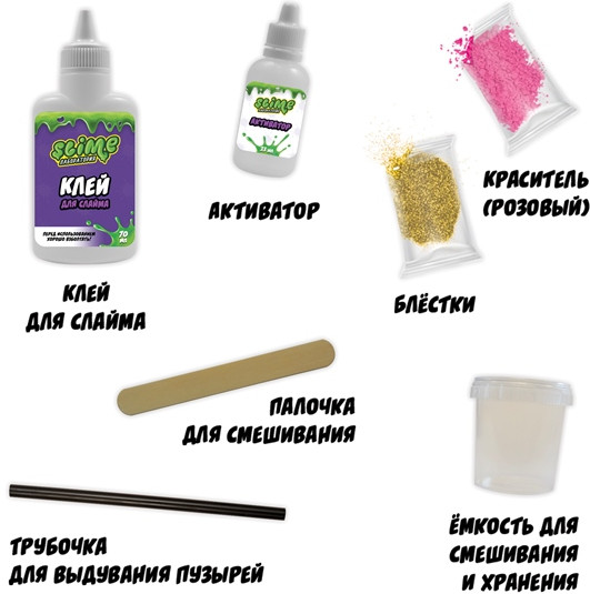 Слайм отличный, легко делать, мерцает и переливается отлично. Ребенок доволен.
