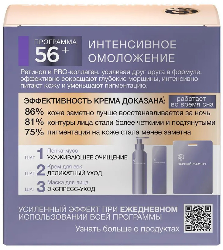 Черный жемчуг Крем для лица ночной антивозрастной+88 мягкая текстура приятный аромат хорошо впитывается смягчает кожу