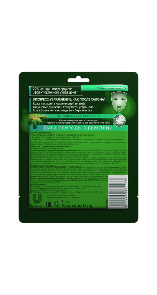Чистая линия Маска для лица тканевая «Увлажнение»