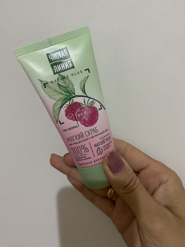 Нежный, деликатный скраб, как раз для чувствительной кожи
