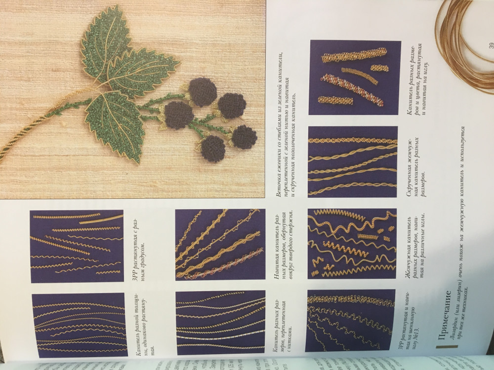все основные приемы, для вышивки канителью, жгутами, пайетками, металлизированной нитью. в любом деле нужен навык, все доступно показано и описано, можно для начинающих. и навык это вы приобретете, невозможного ничего нет, все решаемо)))