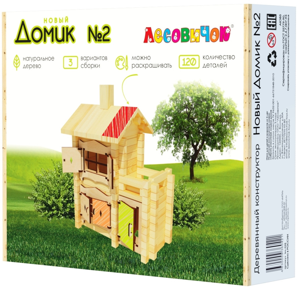 Серия: Новый домик «Новый домик» — серия высококачественного деревянного конструктора отечественного производителя «Лесовичок». Ставни на окнах, двери, заборчики и даже транспортные средства во дворе. Такие мелкие элементы позволяют композиции «заиграть» новыми красками, создают уют. А если еще раскрасить часть элементов по своему вкусу, тогда творение будет полностью уникально.