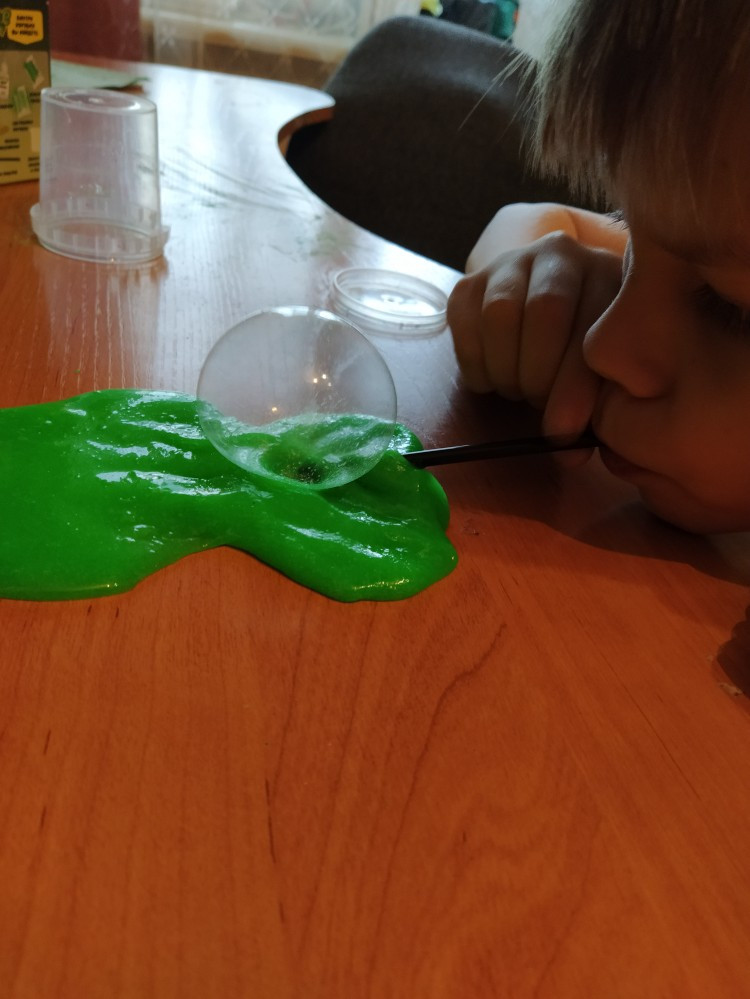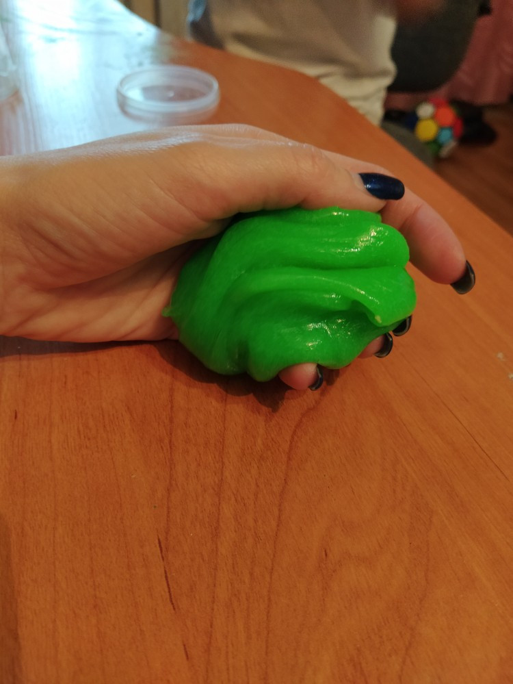 У нас слайм не очень получился: лип к рукам и абсолютно не светился. Хотя, делали все по инструкции=(