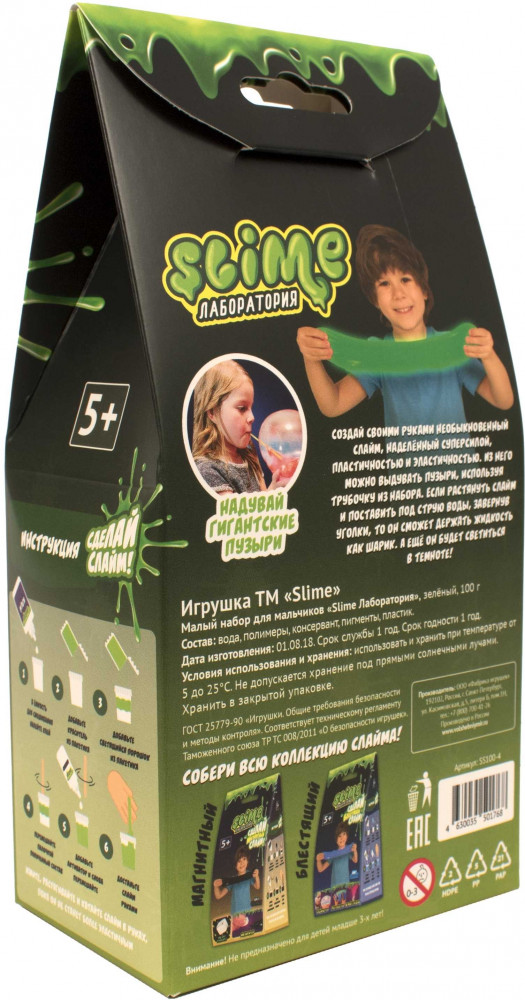 Slime Набор малый для мальчиков «Сделай светящийся слайм»В данный момент этот товар отсутствует в продаже. Возможно, у нас найдется аналогичный или похожий товар здесь. Серия: Лаборатория С помощью «Slime Лаборатории» можно создать гигантский слайм зеленого цвета с помощью красителя в наборе. Эластичные и пластичные одновременно слаймы можно использовать для игр с водой. Благодаря своей эластичности они могут удерживать воду. |