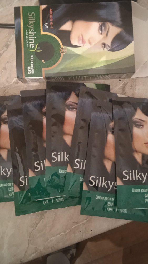 Взяла в первый раз эту краску с хной. Не ожидала что столько пакетиков внутри, думала на один раз краска, мне хватит надолго так как заказала две упаковки. Волосы блестят и красивый оттенок получился, мне такой нравиться,седину закрасил хорошо, рекомендую, тем более натуральная краска без всякой химии.