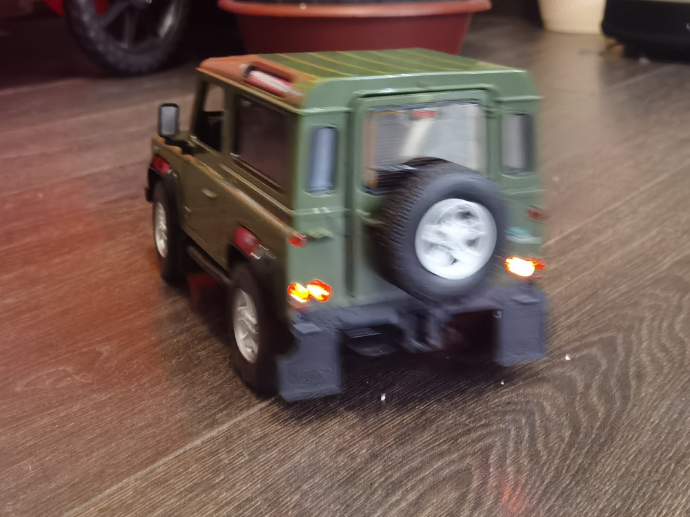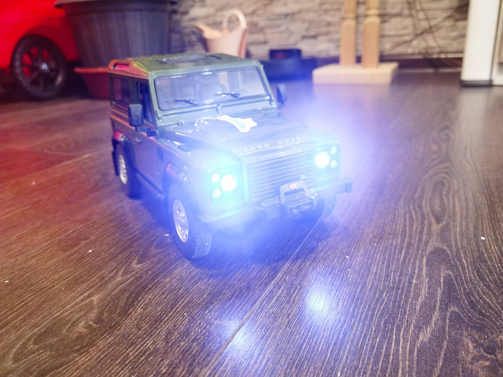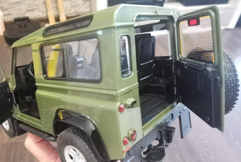 Очень качественная игрушка. Брал себе - муж.37 лет. Хорошая детализация. Радиус поворота большой, как у настоящего Дефендера. Разгоняется быстро. Но мощности хватает только чтобы ездить по ровной поверхности. Открываются боковые и багажная двери. Детализация салона на очень высоком уровне. Пластик тоже хороший.