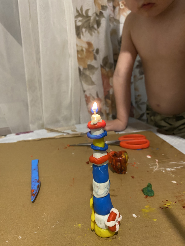 Интересный вариант времяпровождения с ребенком)) сначала фитель плохо горел, а затем все хорошо