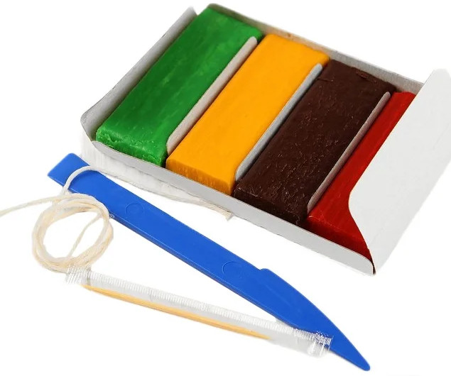 Воск мягкий, хорошо пахнет. Единственное, фитиль почему-то не горел. 🤔 Но это даже лучше, безопаснее. 😉 После лепки остались: фитиль, красный воск, чуть-чуть жёлтого. Можно ещё что-нибудь сделать.