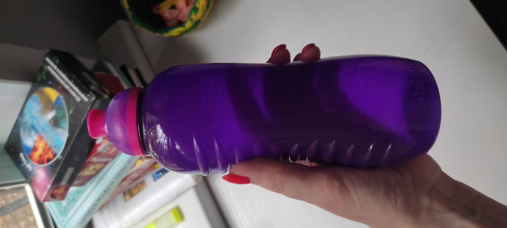 Классная бутылочка, в руках приятно держать. Пластик без запаха. Цвет такой же насыщенный как на фото, она почти не просвечивает. Только мы ее на следующий день потеряли на улице, но воспоминания о ней хорошие 😂😂😂