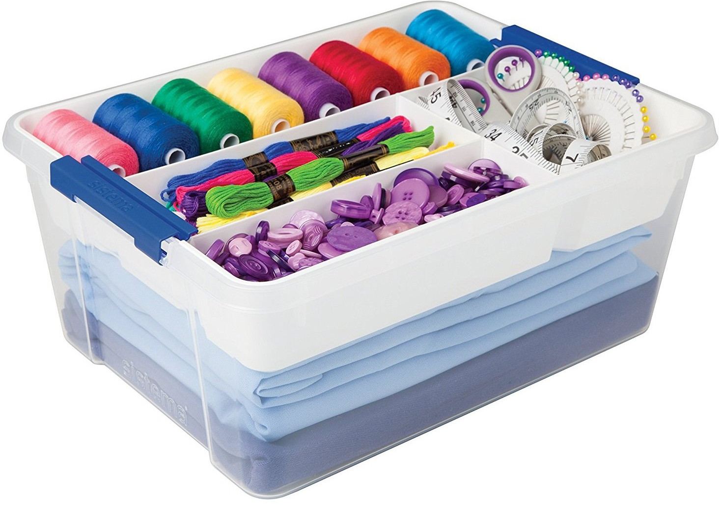 Простой и достаточно удобный контейнер для хранения. Разложила в нём запас рукодельных ниток, чтобы не путались и было легче искать. Достаточно вместителен.
