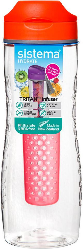 Бутылки Tritan Infuser — это новые емкости от Sistema, которые позволяют брать с собой на прогулку, работу, учебу или тренировку вкусные напитки собственного приготовления. Благодаря новой конструкции бутылки вы сможете каждый день создавать новые миксы фруктов и ягод и делать на основе них освежающие напитки, которые станут прекрасной альтернативой обычной воде или газировке. Наполните ситечко кусочками фруктов, ягод и травами, залейте водой и дайте настояться.