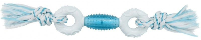 Дентальная жевательная игрушка «Регби и 2 кольца» с ароматом мяты прекрасно массирует десны за счет разнообразной структуры. Игрушка помогает бороться с образованием зубного камня, улучшая здоровье ротовой полости. Собака может её жевать, подбрасывать и приносить. |
