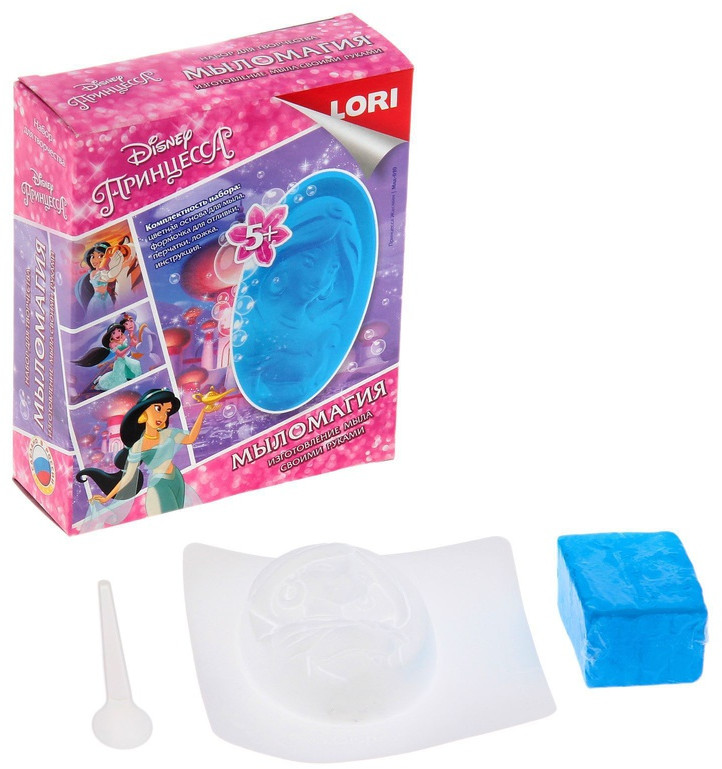 Чтобы удивить близких необычным подарком, надо очень постараться. Но теперь у детей есть прекрасная возможность изготовить сюрприз своими руками, используя составляющие этого набора. В итоге кроха получит яркий кусочек мыла с портретом героини диснеевского мультфильма «Алладин».