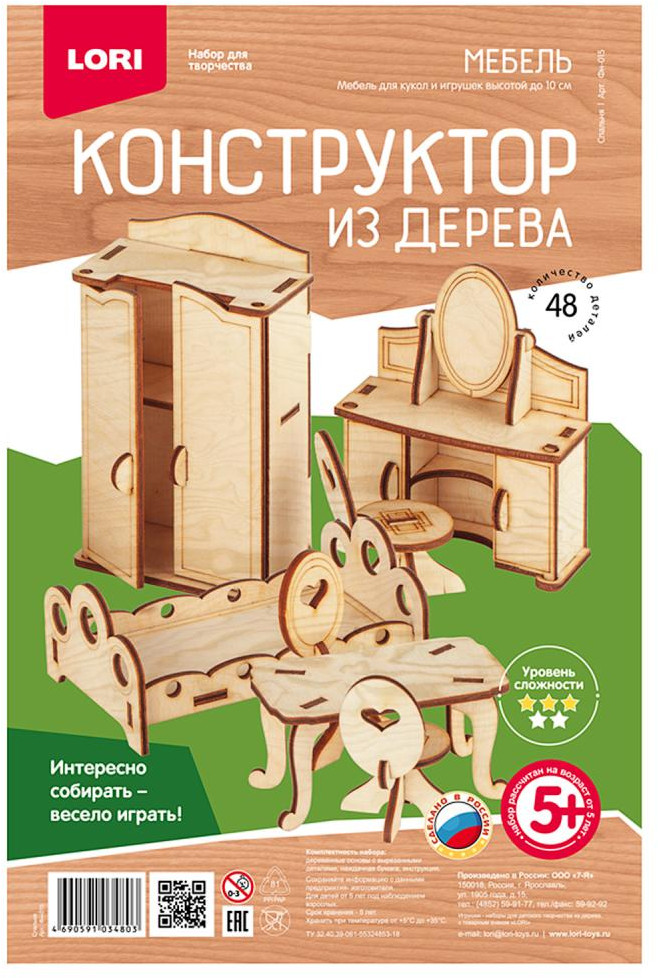 Lori Конструктор из дерева «Спальня»В данный момент этот товар отсутствует в продаже. Возможно, у нас найдется аналогичный или похожий товар здесь. Серия: Конструктор из дерева Наборы из серии «Конструктор из дерева» развивают образное мышление, мелкую моторику, творческие способности, прививают эстетический вкус, внимательность, аккуратность, усидчивость, трудолюбие. |