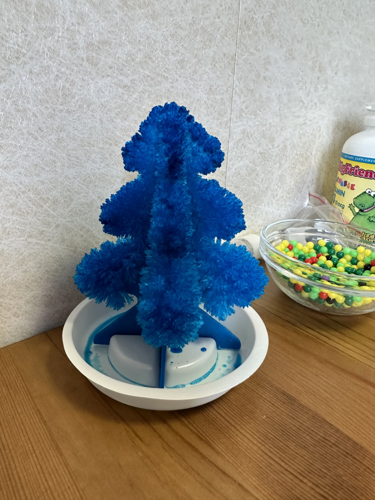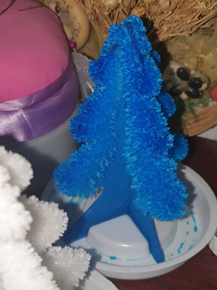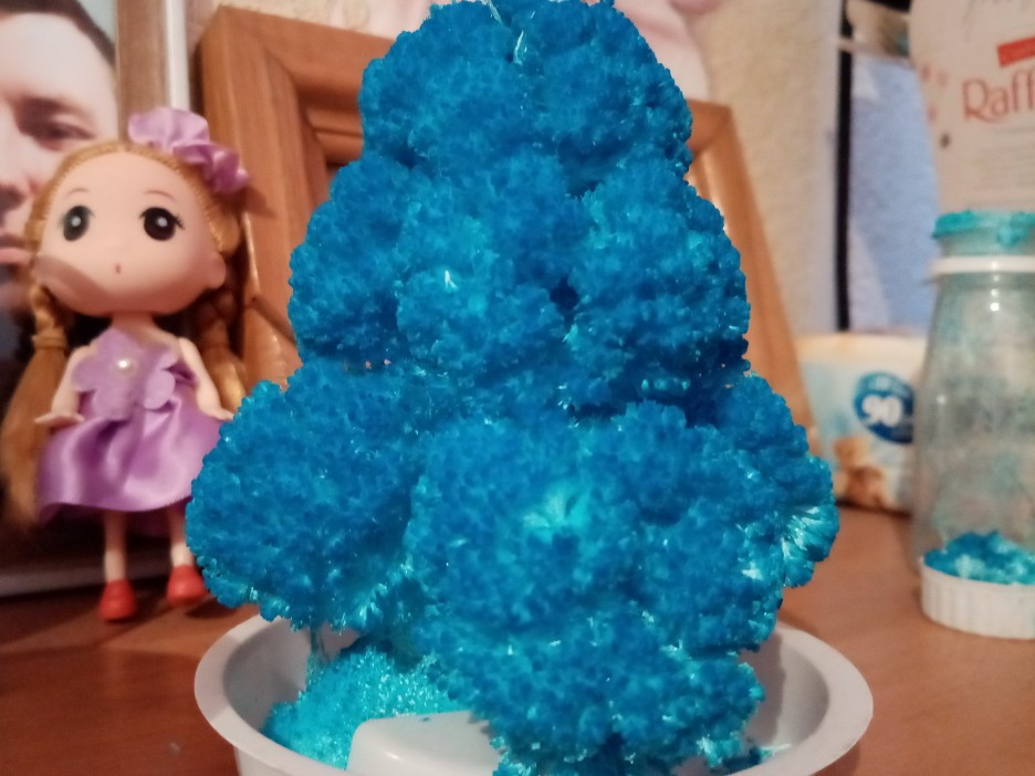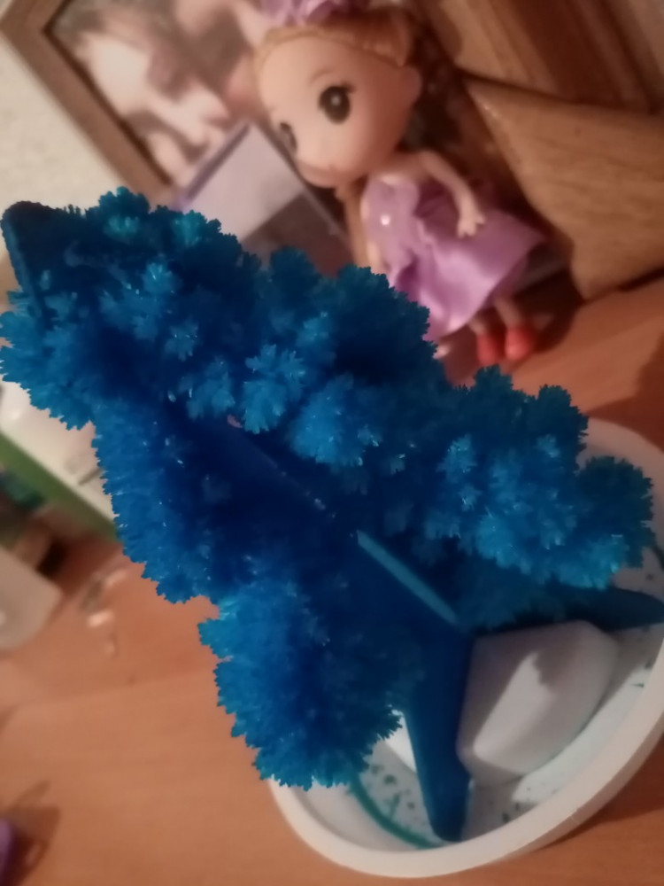 Товар понравился всей семье, очень интересно наблюдать за тем как росту кристаллы. Смотрится не обычно и красиво, фото конечно не передаёт полностью цвет и всю красоту. 1 фото в стадии росло а на втором уже в готовом виде)