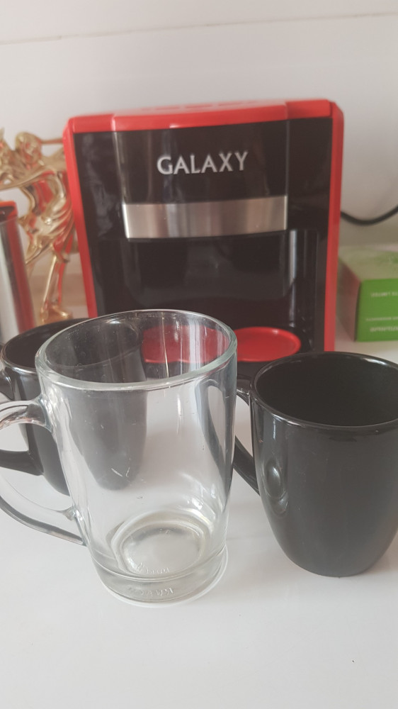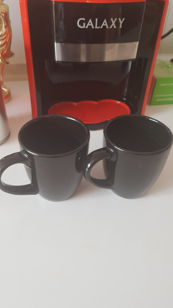 Цена соответствует качеству. Чашечки маленькие. Я для примера сфоткала с обычным стаканом. Кофе варит отлично. Сама кофеварка не самого лучшего качества.