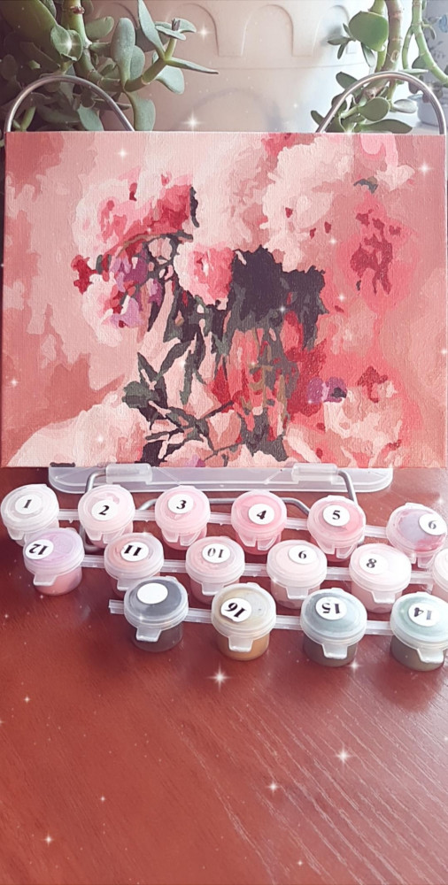 Приятная в работе картинка. Компактный размер, удобно рисовать. Не соответствует фото на упаковке, конечно (относится ко всем картинам, у которых фотоизображение). Немного сама прорисовала вазу, иначе ее совсем не видно. В целом - хорошая, в нежных тонах, подойдет для начинающих.
