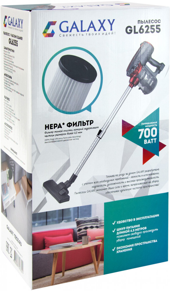 Galaxy ПылесосВ данный момент этот товар отсутствует в продаже. Возможно, у нас найдется аналогичный или похожий товар здесь. Легкий компактный и маневренный вертикальный пылесос Galaxy GL6255 подходит для уборки небольших помещений дома, офиса и дачи. |