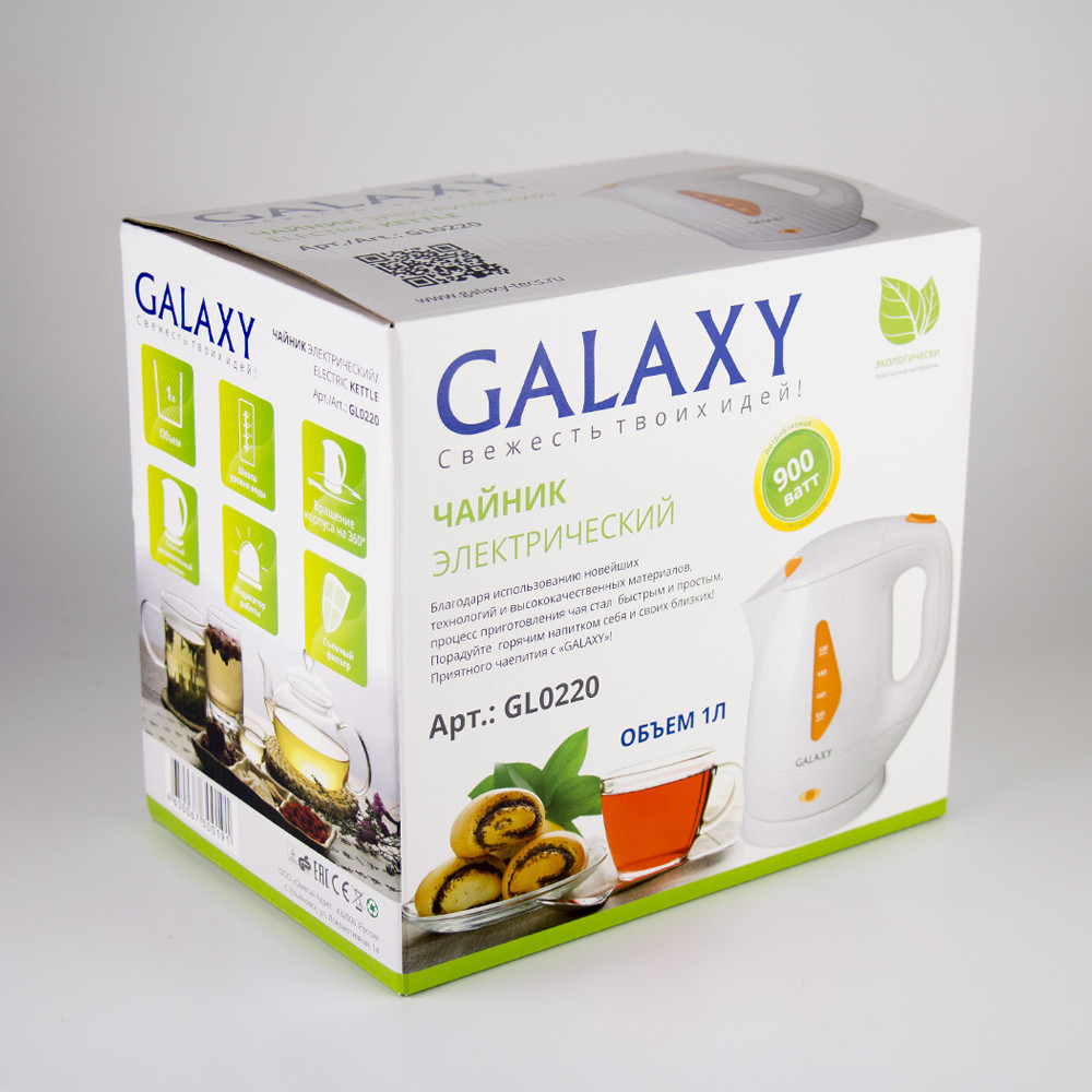 Galaxy Чайник GL0220В данный момент этот товар отсутствует в продаже. Возможно, у нас найдется аналогичный или похожий товар здесь. Электрочайник Galaxy GL0220 выполнен в белом корпусе и представляет собой привычный бытовой прибор, при помощи которого вы быстро сможете закипятить или подогреть воду. Изготовлен чайник из пластика, поэтому его корпус отличается небольшим весом. Эргономичная ручка способствует комфортному хвату, поэтому вы не сможете упустить устройство. Модель использует скрытый нагревательный элемент, обладающий мощностью 900 Вт. |