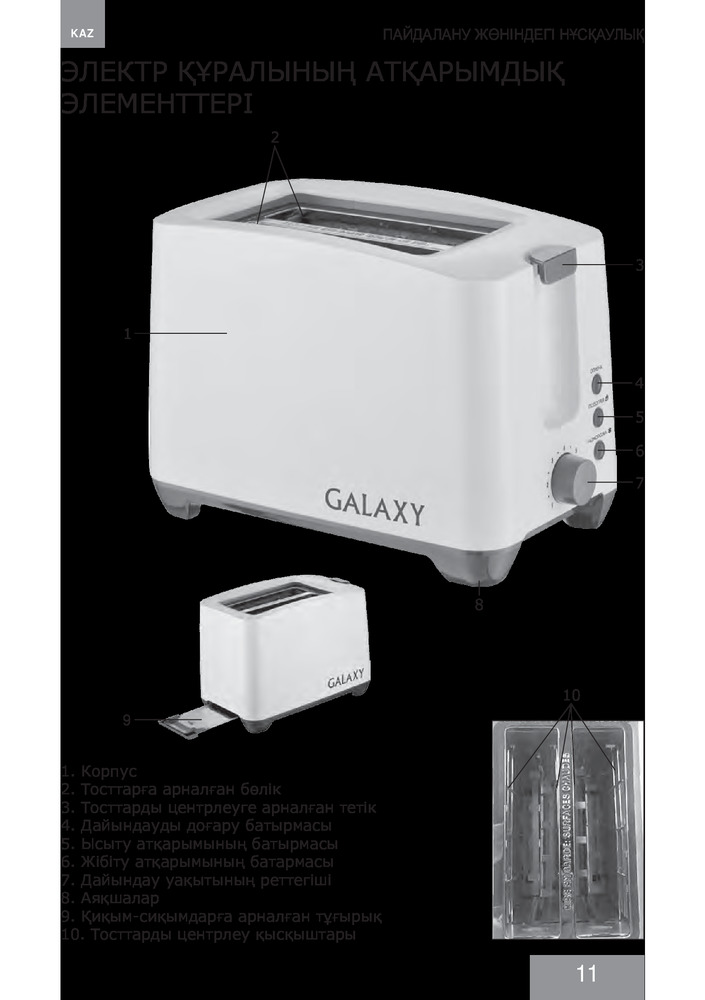 Тостер Galaxy GL2907 имеет яркий дизайн, а также съемный поддон для крошек, облегчающий чистку прибора.
