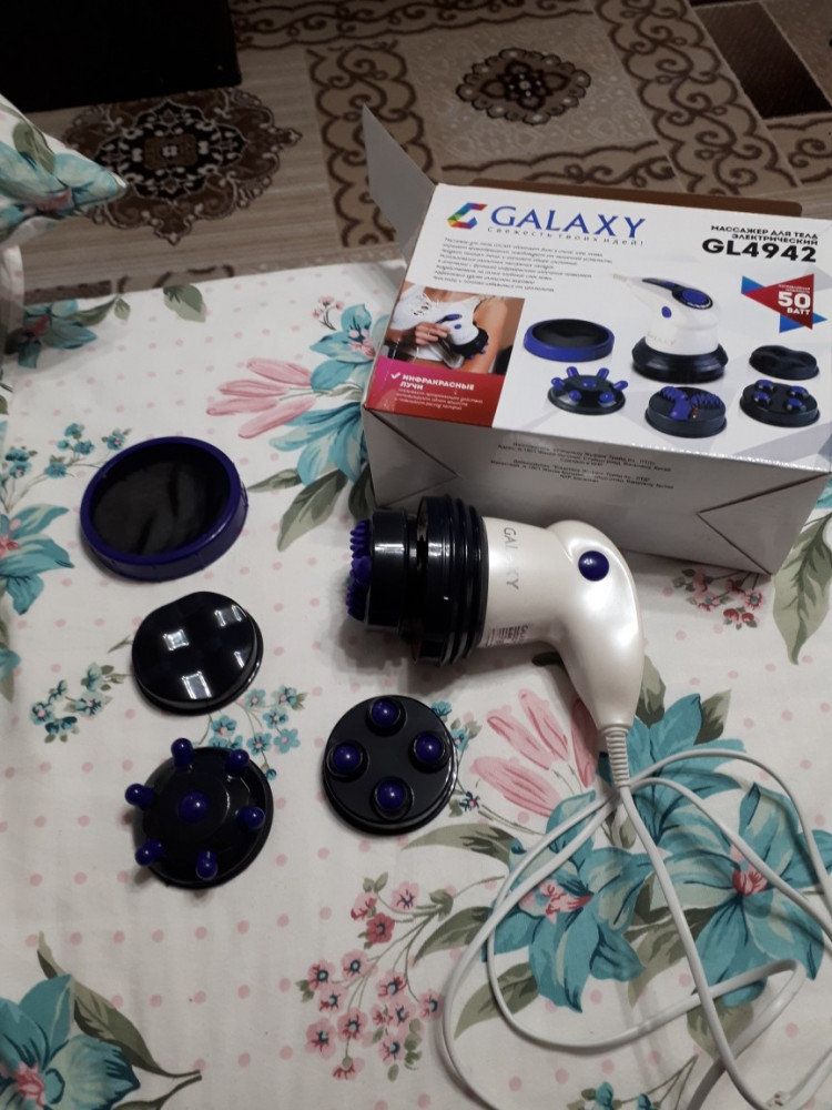 Массажёр понравился, мощный. Регулируется скорость вращения, инфракрасное излучение если не нужно, то можно отключить, в-общем покупкой очень довольна. Рекомендую, не пожалеете.