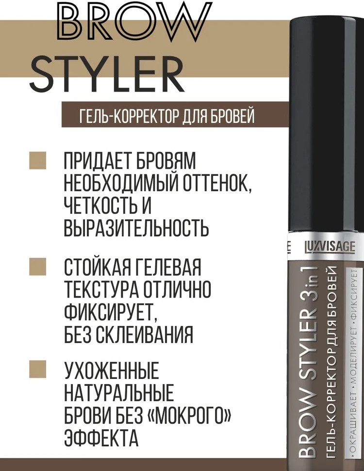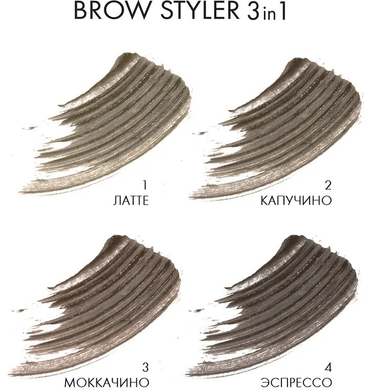 LuxVisage Гель-корректор для бровей 3 в 1 «Brow styler», оттенок 4 Эспрессо