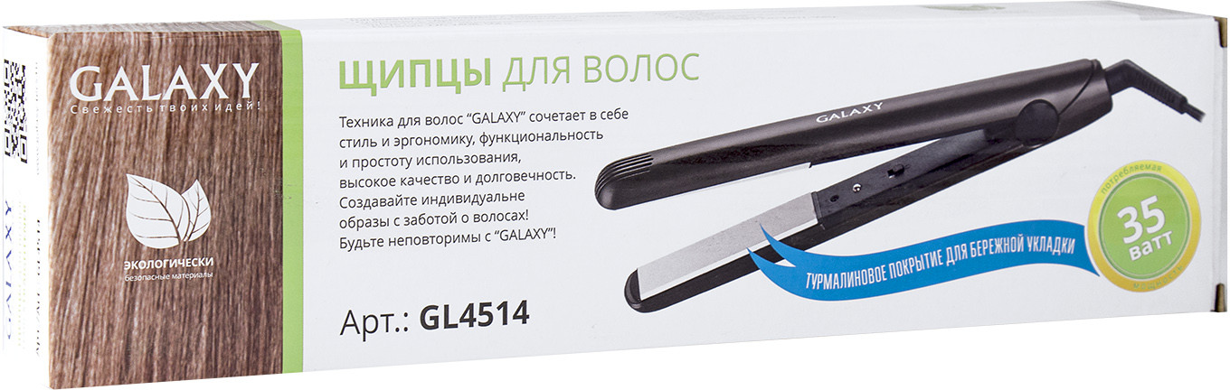 Практичные, качественные щипцы Galaxy GL4514 с удлиненными рабочими пластинами для выпрямления густых и длинных волос.