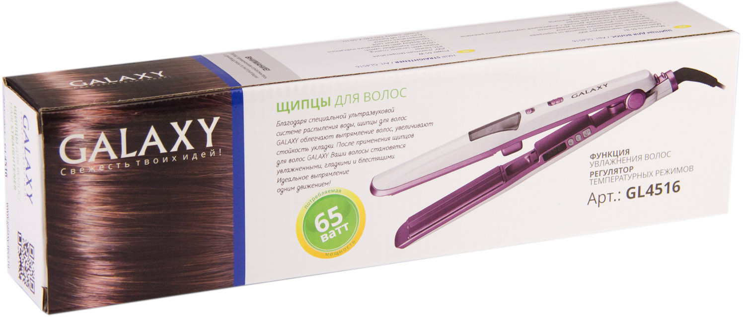 Утюжок для волос Galaxy GL4516 имеет уникальную технологию ультразвукового увлажнения.
