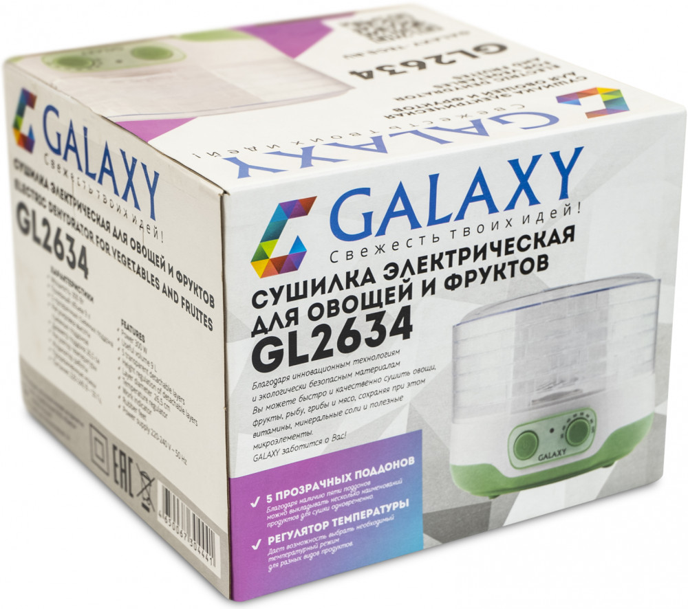 Galaxy Электросушилка для овощей и фруктов GL2634В данный момент этот товар отсутствует в продаже. Возможно, у нас найдется аналогичный или похожий товар здесь. Электросушилка Galaxy GL2634 поможет вам высушить не только фрукты и овощи, но и грибы, зелень, рыбу, мясо и даже приготовить хрустящие сухарики. Благодаря идеальному соотношению нужной температуры и скорости обдува продукты просушиваются равномерно и быстро. 5 прозрачных съемных поддонов изготовлены из экологически безопасного пищевого пластика. Благодаря функции регулировки высоты поддонов, вы можете высушить одновременно различные виды продуктов. |