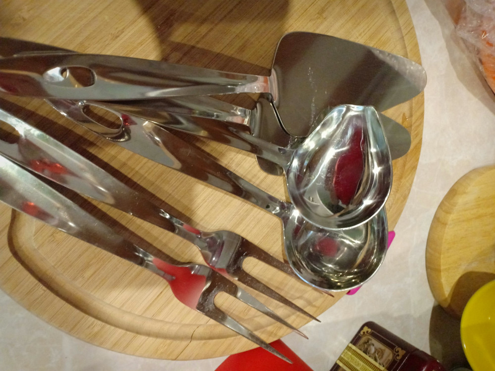 Набор понравился, хорошо лежит в руке. Метал прочный и не гнется. Хоть и упакован был некачественно, сами приборы без царапин, обработаны хорошо.