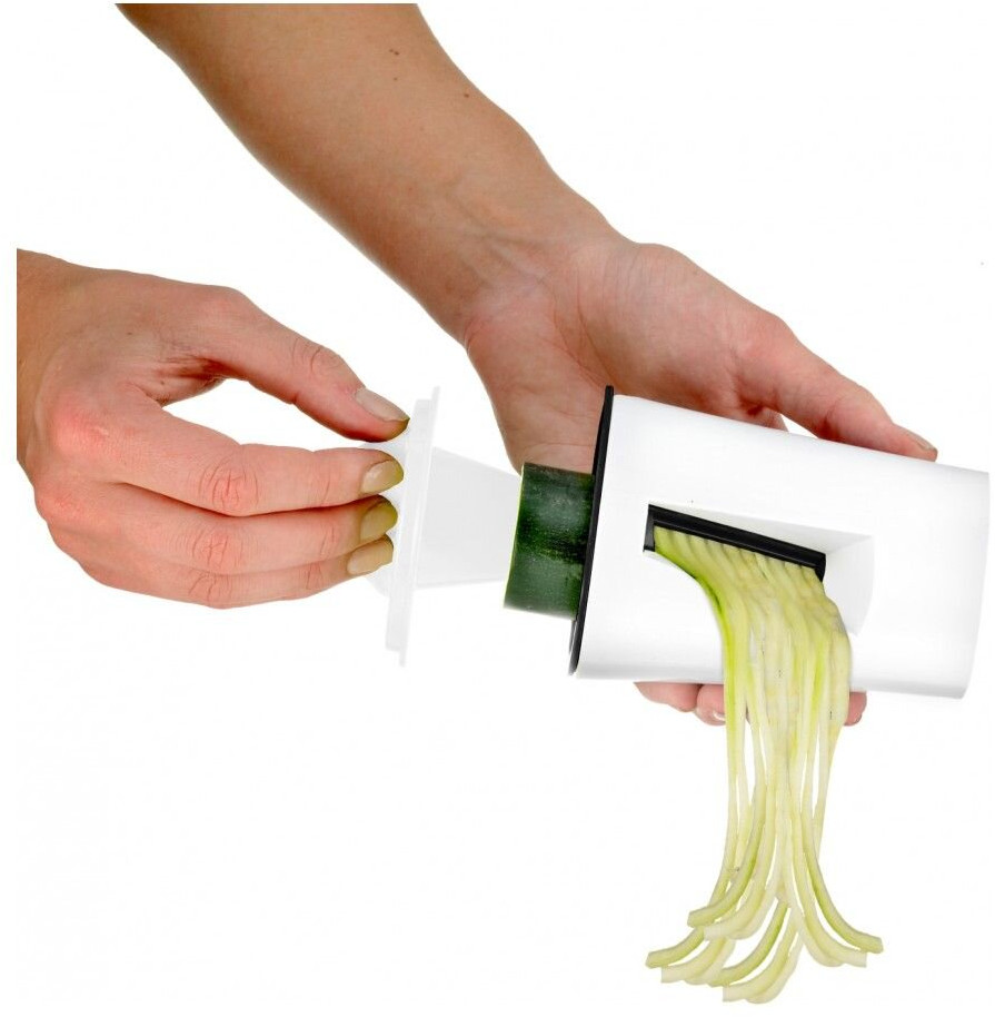 Соковыжималка позволяет делать сок из цитрусовых. Овощерезка — современный гаджет, с помощью которого вы сможете порадовать свою семью полезной едой и изысканной подачей блюд: овощными салатами и пастой из овощей. Овощерезка идеально подходит для кабачков, цуккини, моркови, огурцов, пастернака и других овощей продолговатой формы. К овощерезке прилагается держатель, с помощью которого можно нарезать овощи, не боясь пораниться об острое лезвие.