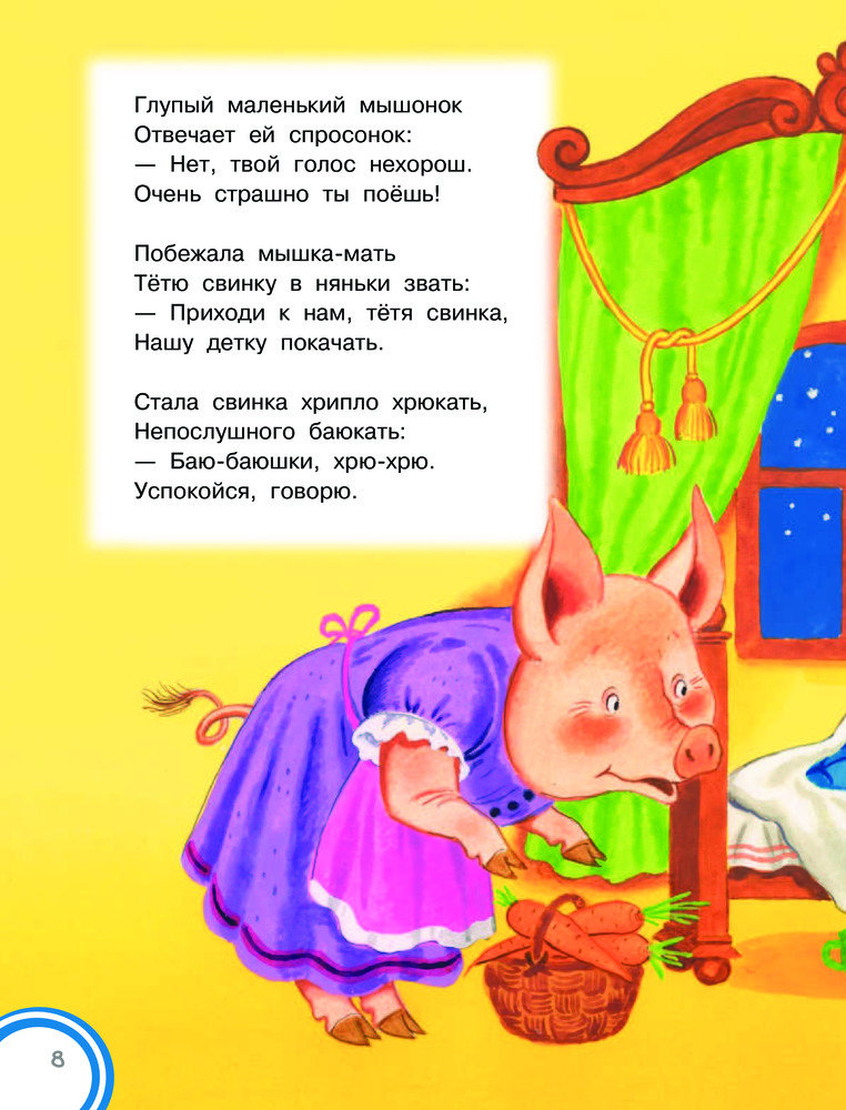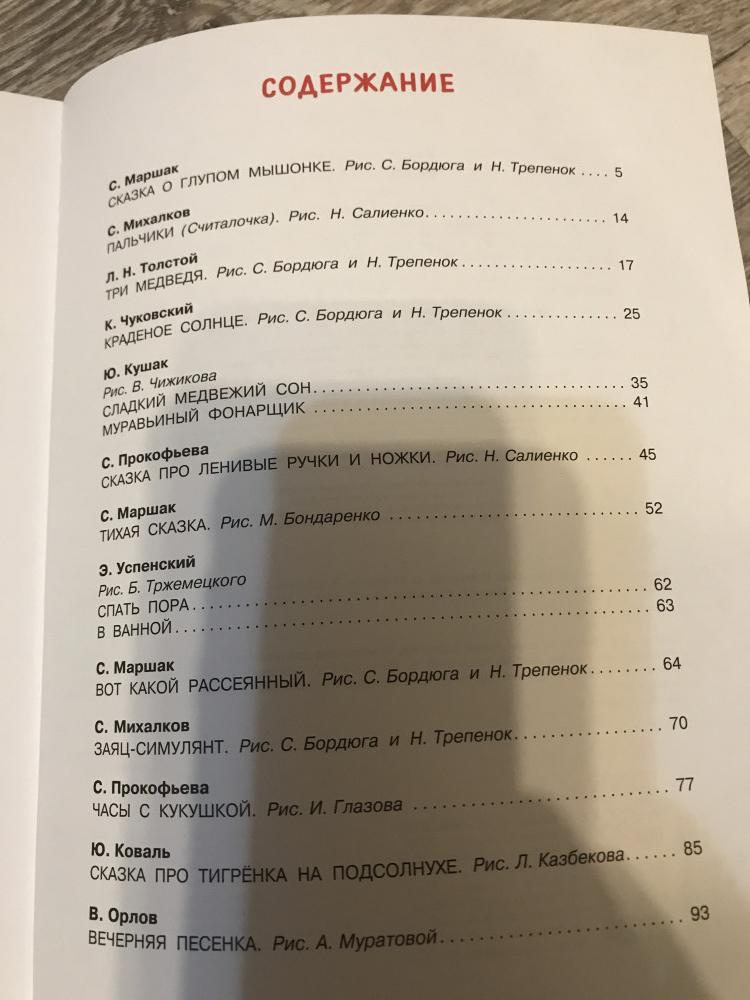 Книга хорошая, иллюстраций много детям будет интересно. Доставка целый месяц (только это не понравилось) содержание. Сказка о глупом мышонке Пальчики Три медведя Краденое солнце Сладкий медвежий сон Муравьиный фонащик Сказка про ленивые ручки и ножки Тихая сказка Спать пора В ванной Вот такой рассеянный Заяц-симулянт Часы с девушкой Сказка про тигренка на подсолнухе Вечерняя песенка