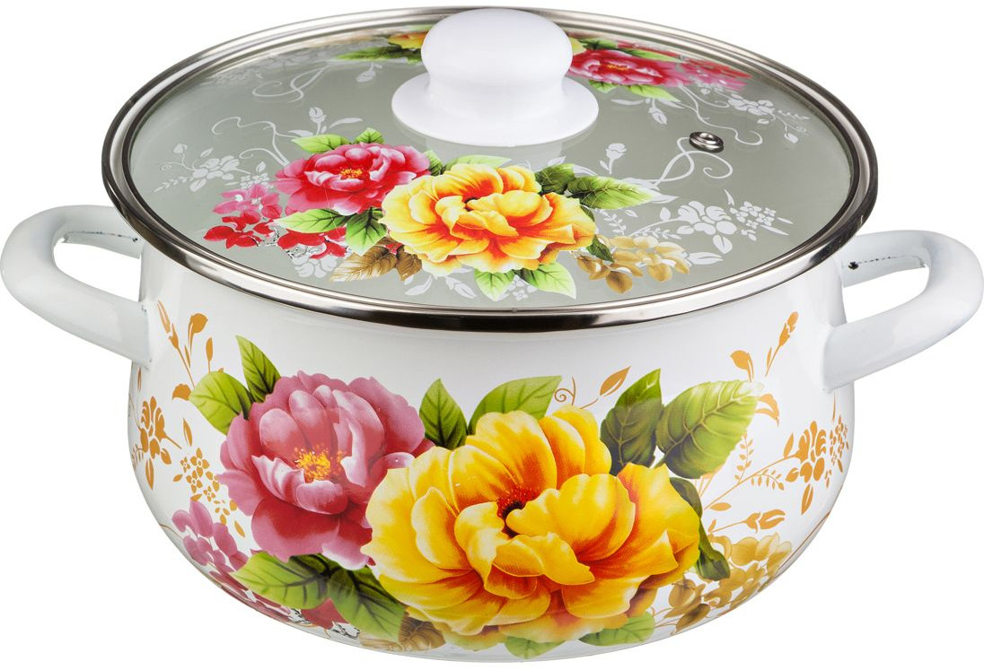 Agness Кастрюля со стеклянной крышкой «Пионы»