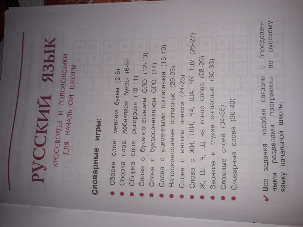 Русский язык. Кроссворды и головоломки для начальной школыВ данный момент этот товар отсутствует в продаже. Возможно, у нас найдется аналогичный или похожий товар здесь. Серия: Умные кроссворды С помощью нашей книги ученик начальной школы будет правильно писать словарные и сложные слова, выучит и запомнит основные правила русского языка: правописание слов с безударными гласными, удвоенными согласными, непроизносимыми согласными, слов с мягким знаком и т.д. |