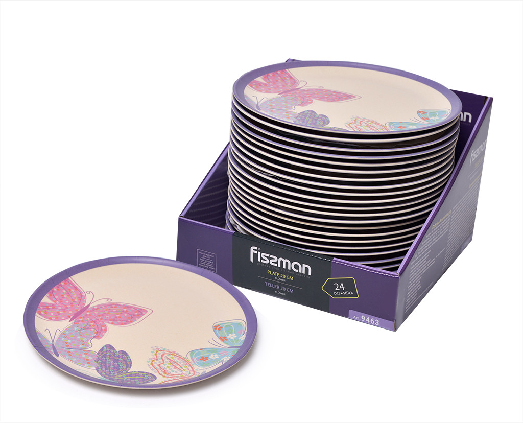 Тарелка плоская «Flower» изготовлена из бамбукового волокна, экологически чистого материала, обладающего природными антибактериальными свойствами, препятствующими росту и размножению бактерий, не впитывает запахи. Несмотря на легкость, изделия из бамбукового волокна крайне прочные и способны выдержать очень большие нагрузки. При производстве посуды используются натуральные красители. Не рекомендуется мыть в посудомоечной машине.
